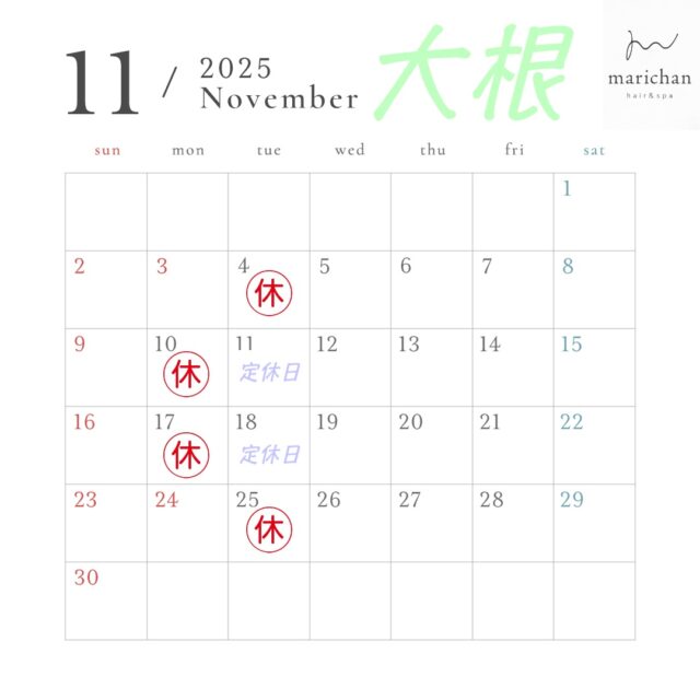 hair&spa marichan 2025.11 スタイリスト公休のお知らせです。